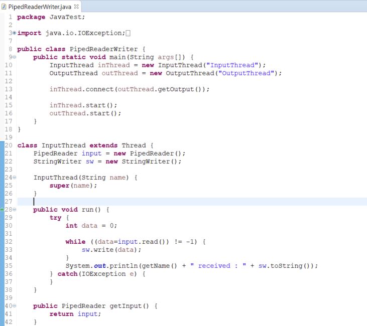 PipedReader/PipedWriter는 쓰레드 간에 데이터를 주고받을 때 사용합니다.