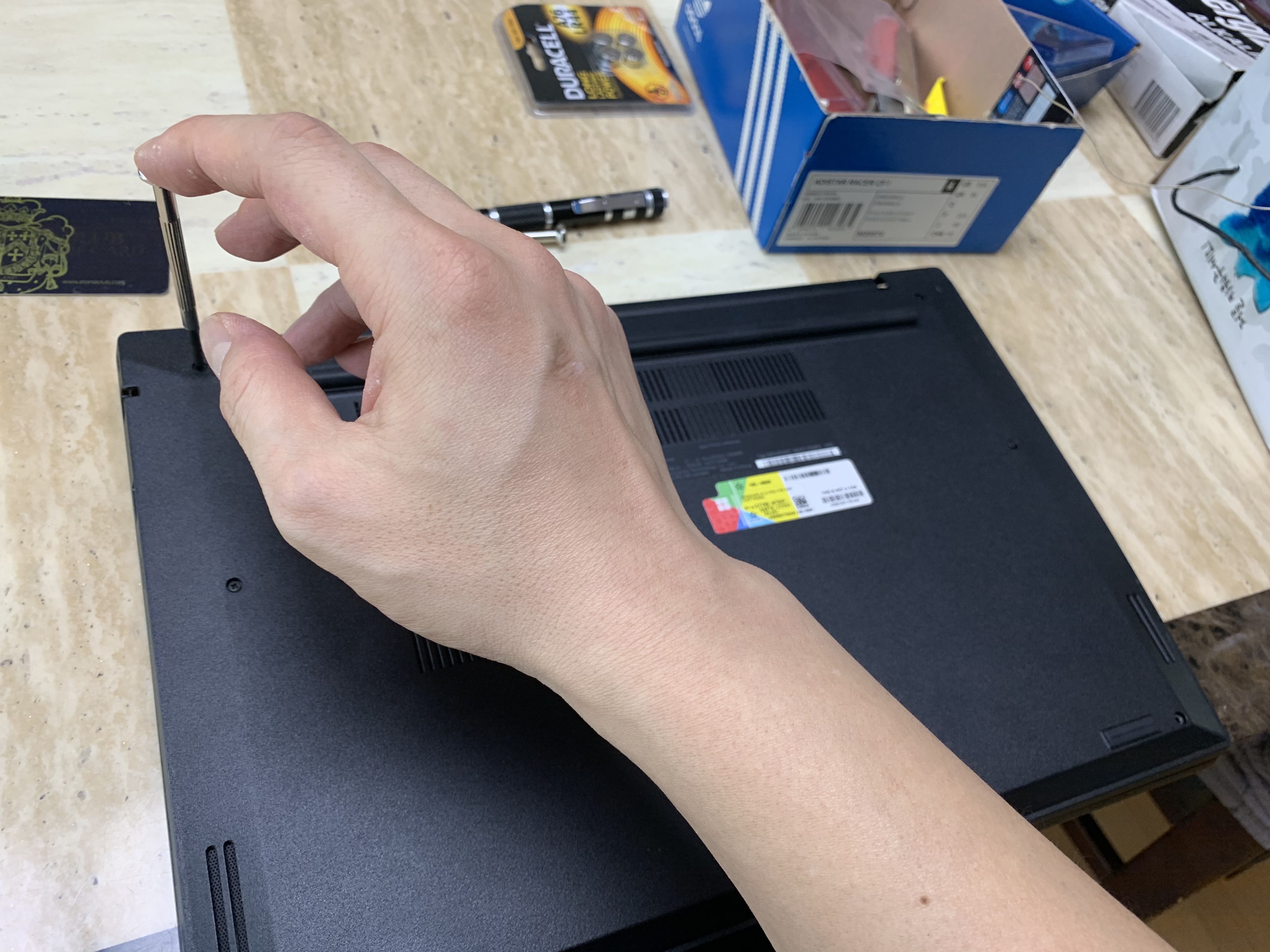 우선 아래와 같이 드라이버로 노트북의 뒷면 볼트를 모두 풀어줍니다.