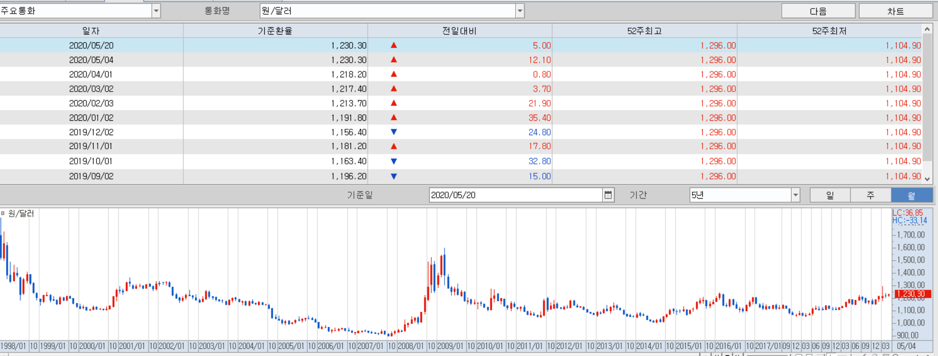위 그래프는 원달러 환율을 나타내주는 그래프입니다.