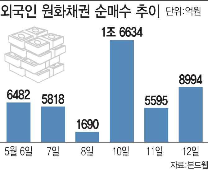위 도표는 외인의 단기채권 순매수 현황인데 계속해서 장기채권보다 단기채권에 순매수를 보이는 것이 그렇게 좋아보이지는 않은 모습니다.