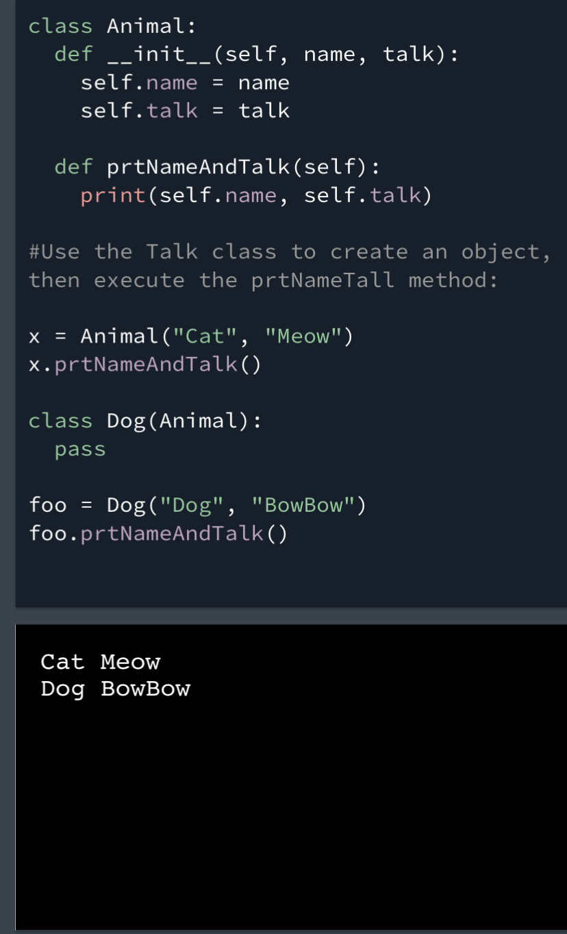 Now the Dog class has the same properties and methods as the Animal class.