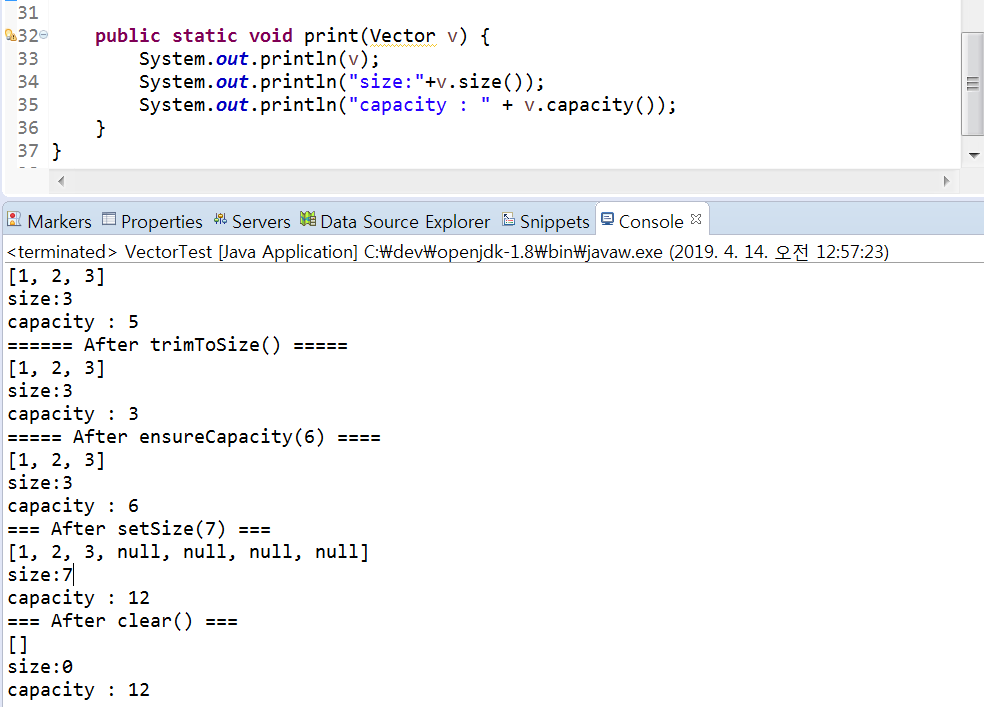 그리고 다음은 Vector 클래스에 대한 예제입니다.