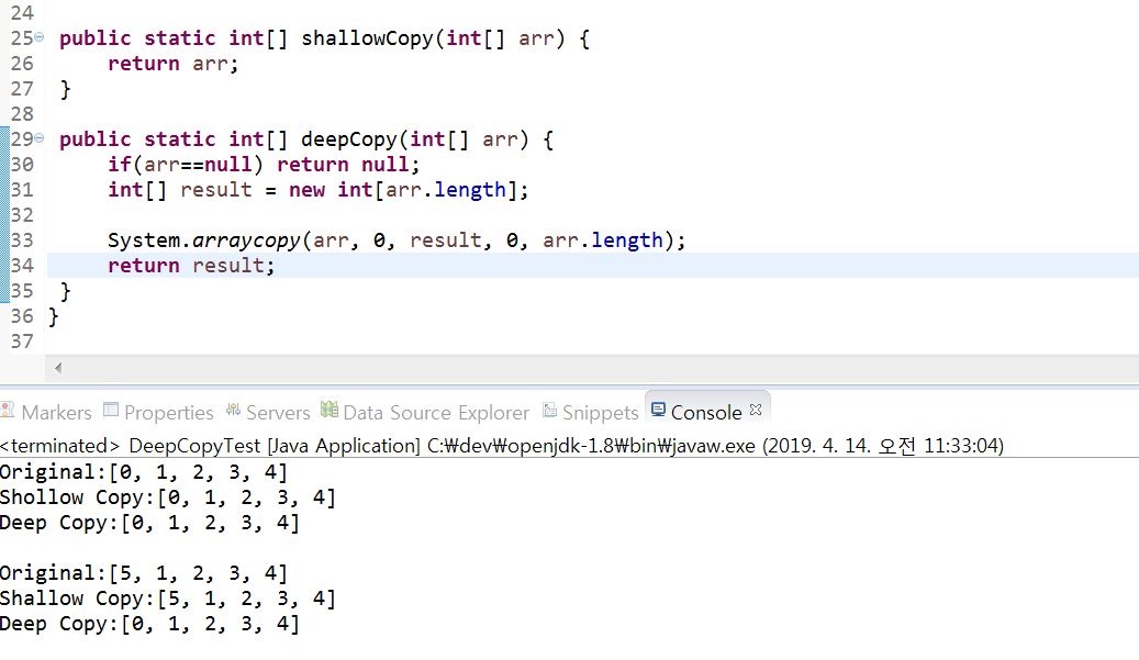 그래서 얕은 복사일때는 원본이 변경되면 복사본도 같이 변경되지만, 깊은 복사인 경우에는 원본 데이터가 변경되더라도 영향을 미치지 않습니다.
